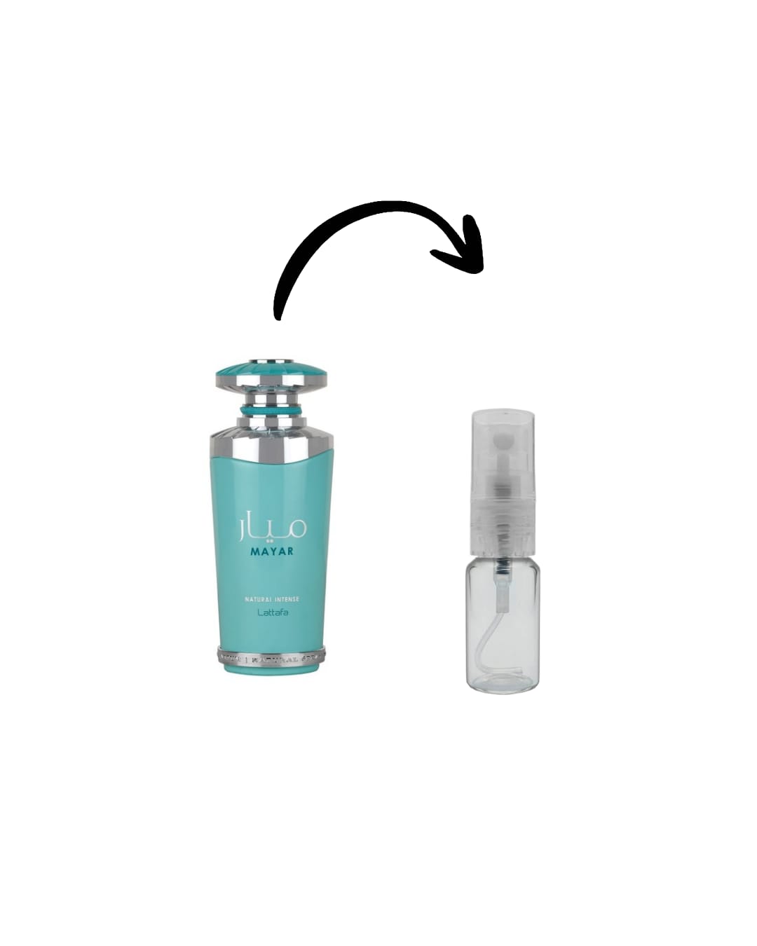 O Mayar Natural Intense é um Floral Frutado Aquático. Ele foge do doce melado e aposta em uma estética "clean girl", remetendo a banho tomado, natureza exuberante e sofisticação natural.