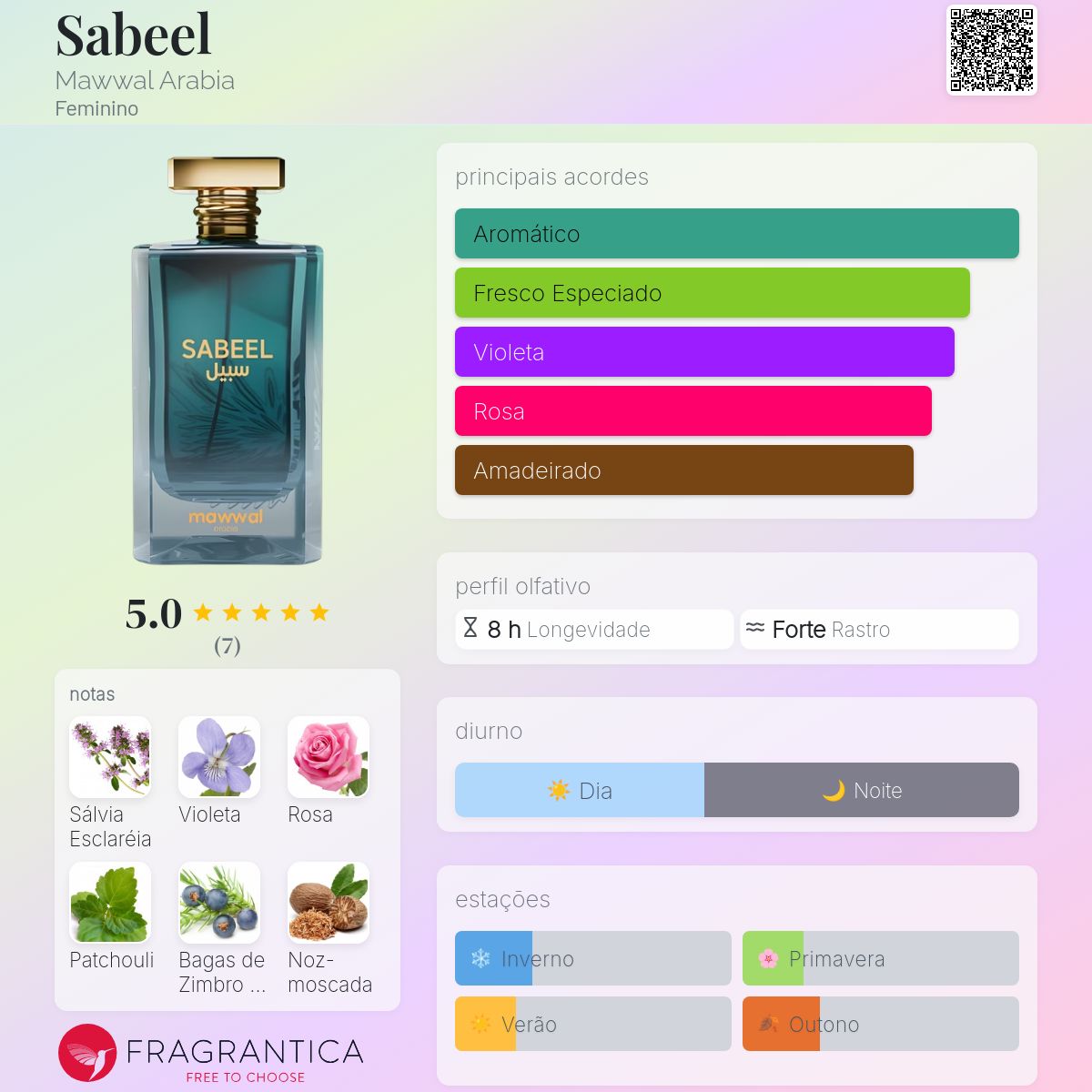 O Sabeel é para quem quer a qualidade de fixação de um perfume árabe, mas prefere o estilo de fragrância fresca, limpa e versátil. Ele é menos doce que o Najma e menos denso que o Basir.